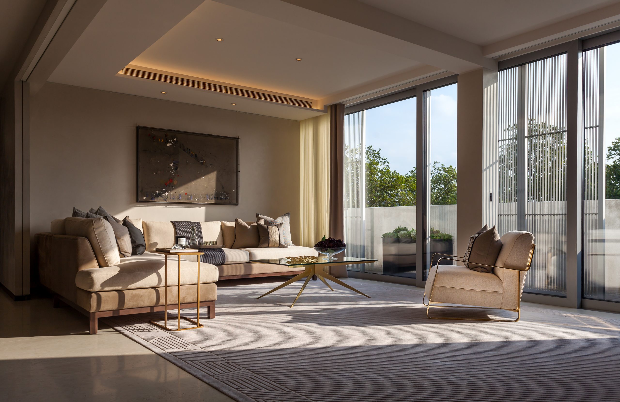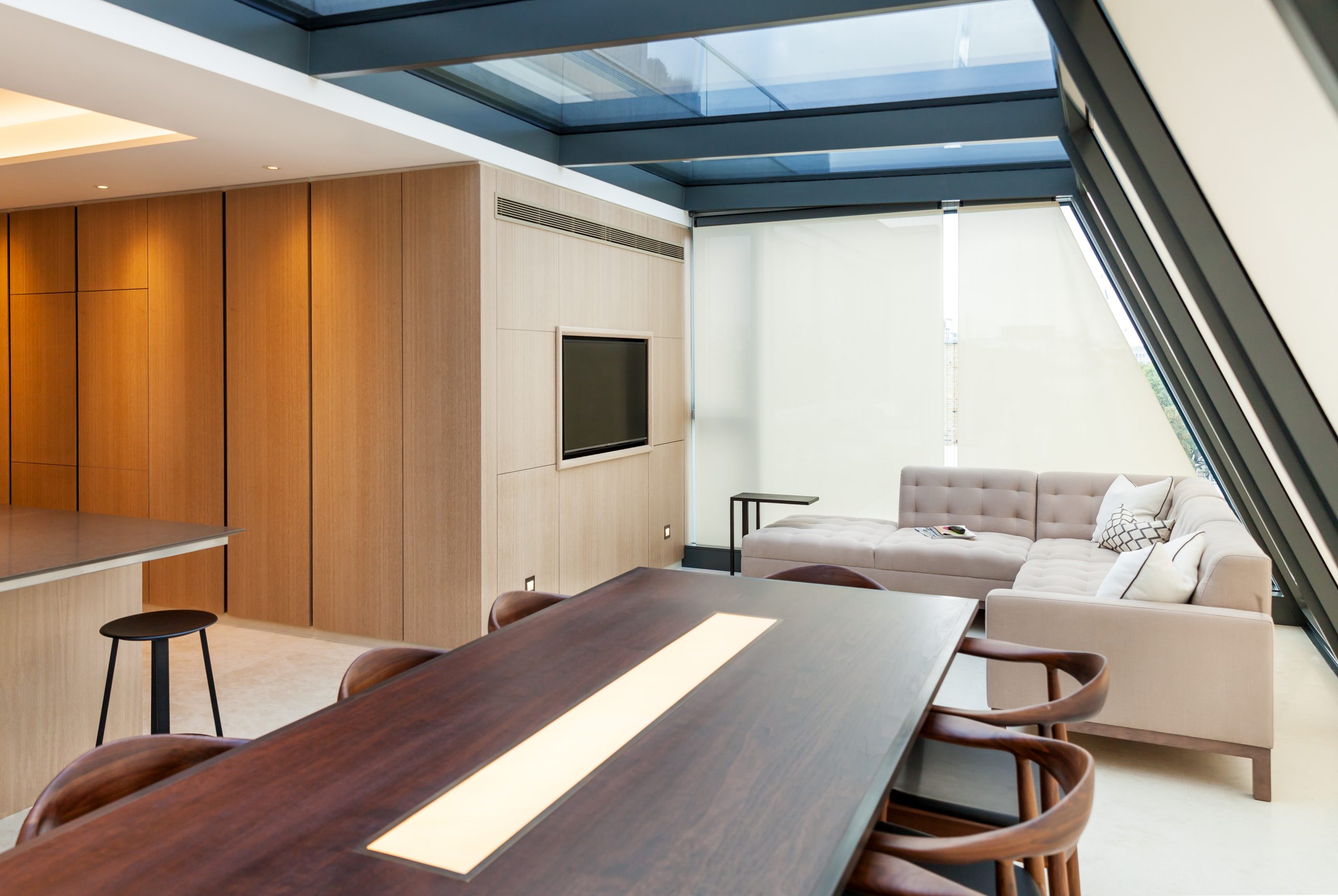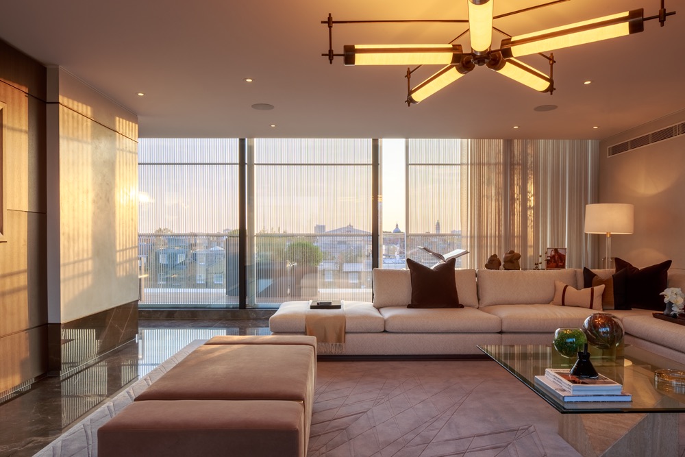 The challenge was to extend and completely reinvent an existing penthouse pavilion. We unlocked the design by inverting the layouts to relocate all bedrooms to the lower floor, leaving the top to be fully enjoyed as a living and entertaining space.