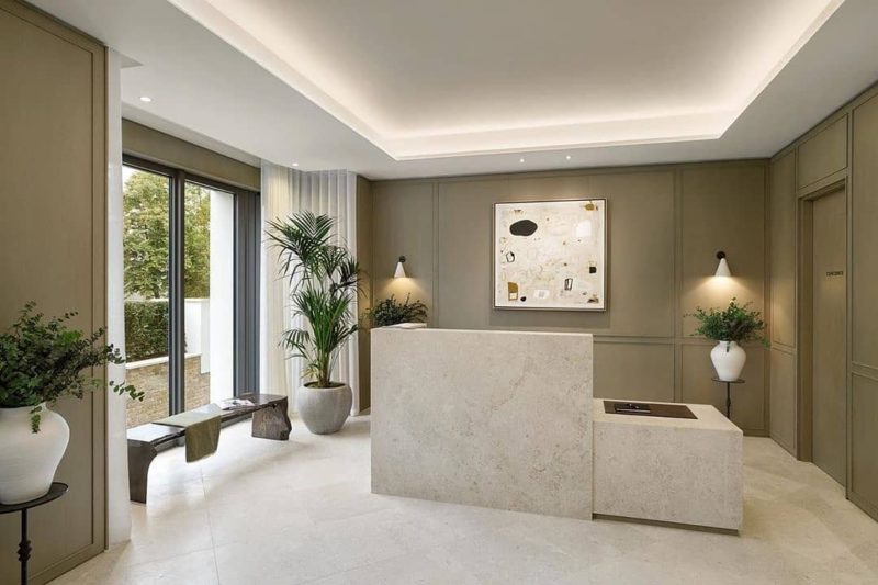 A concrete frame with extensive substructure clad in a mix of pre-cast stone, London stock brick slip, and polymer render.  Contractually the project was delivered with frame & facade contractor and a separate fit-out contractor.